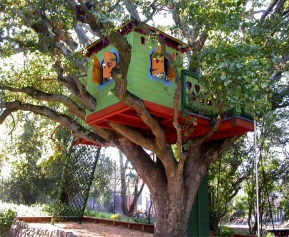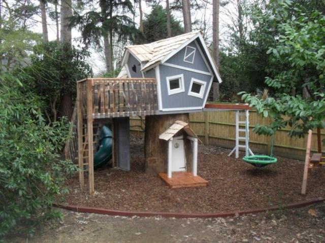 Примеров предостаточно, бери и креативь по полной, - что называется. Для детей на даче конечно лучше своими руками, да ещё и с элементами ландшафта и натуральных конструкций типа живых деревьев, - так вообще супер должно получаться...