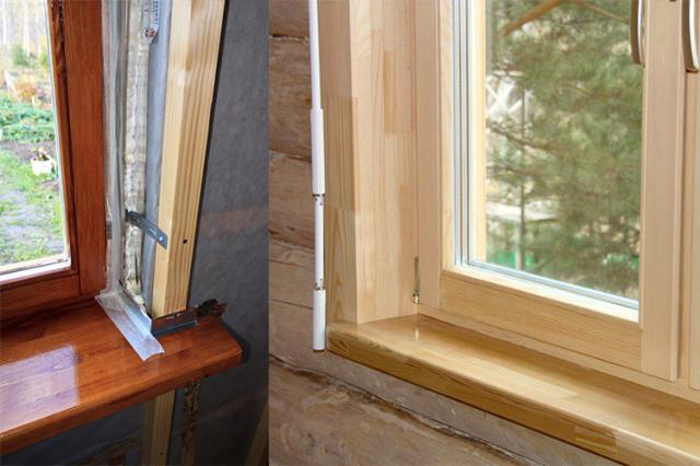 Монтаж деревянных окон. Грамотно выполненный монтаж устраняет недостатки натуральных окон по герметичности, а использование ценных пород деревьев и установка в раме стеклопакета делает окна качественными и экологичными изделиями. Деревянные окна требовательны к грамотной установке. Правильно проведенные работы обеспечат качественную изоляцию от уличного шума и позволят сохранить тепло или прохладу внутренних помещений дома. Основные этапы установки своими руками. Производство деревянных оконных изделий, реализуемых на строительных рынках, является качественным и соответствующим мировым стандартам. Часто эта продукция имеет высокую стоимость, но технология установки окон из дерева самостоятельно — процесс несложный и удешевляет расходы до 10 %. Чтобы поставить окно с соблюдением строительных норм, необходимо знать этапы выполнения работ по монтажу оконных рам. От того, насколько правильно ставим окно, зависят его качественные преимущества и срок службы. Рекомендуемые этапы проведения работ по установке оконных конструкций изложены в инструкции изготовителя изделия, но существует много нюансов, которые нужно знать, чтобы установить деревянные окна качественно. Основные особенности установки окон из дерева заключаются в последовательном выполнении: демонтажа старой рамы; очищения проема окна; снятия правильных замеров; установки подоконника и отливов; установки окна в проеме; фиксирования коробки в проеме; изоляции пространства между коробкой и проемом; настройки и регулирования элементов закрытия/открытия окна; оформлении откосов оконного периметра; отделки наружного периметра. Замер размеров и подготовка оконного проема. После проведения демонтажа старой рамы необходимо очистить проем окна до ровного прямоугольника. В каменном доме аккуратно сбиваются штукатурка и старые откосы. Затем нужно ликвидировать трещины, крупные выбоины, перекосы и убрать строительный мусор. Внимательно изучается наличие и состояние притолоки. В домах из железобетонных монолитов притолок нет, так как само окно в квартире является частью плиты ЖБК. Особое внимание следует обратить на прочность закладных при их наличии. Это — деревянные брусья, вмурованные в стены, предназначенные для монтажа оконных блоков. Непрочные закладные требуют замены. Отсутствие закладных не влияет на монтаж деревянных окон по ГОСТу — они использовались в старых и деревянных домах. Замеры легче производить при пустых оконных проемах, сложнее определять размеры при наличии старых конструкций. Принципы процесса замеров различны для кирпичных и панельных, новых и старых деревянных домов. Например, четверть наружной части стены отсутствует в доме из дерева, окна монтируются снаружи, а отделка ограничивается установлением наличника. Измерение начинается с определения ширины наружной части проема — расстояния между четвертями. При наличии старого окна нужно его открыть и произвести замеры рулеткой снаружи. Замер ширины внутреннего проема — определение расстояния между откосами. Затем вычисляем разницу этих замеров. Например, ширина наружного откоса — 1260 мм, а внутреннего — 1400 мм, полученная разница — 140 мм. Определение необходимой ширины четвертей вычисляется делением результата на 2 — получаем размер четвертей, который равен 70 мм. Чтобы у