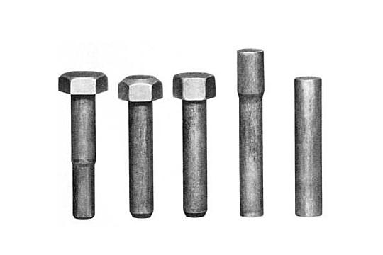 Методы изготовления крепежа. Основными методами изготовления крепежных изделий массового применения являются: горячая и холодная пластическая деформация, обработка резанием, литье, сварка, прессование из порошковых материалов и комбинация этих способов. При массовом и крупносерийном производстве всех видов крепежа наиболее экономичным способом является обработка материалов давлением, после которой, в случае необходимости, следует обработка резанием (так называемые вторые операции). К этим операциям относят: обрезку граней головки, снятие фаски, обточку концов стержней, прорезку шлицев на головках изделий, высверливание отверстий, шлифование гладких частей болтов высокой точности, нарезка внутренней резьбы и др. Операции пластической деформации заготовок выполняют на одном автомате (последовательно или одновременно). Реже для этого используется два автомата. К основным методам пластической деформации относят: обратное и прямое выдавливание, просечку отверстий, высечку контуров, гибку и т. п. Экономические показатели процесса во многом зависят от способностей металлов и сплавов к пластическому деформированию, которые возможно повысить за счет использования определенных методов. Во-первых, к такому результату приводит правильный выбор сплава для изготовления заготовок. Во-вторых, немаловажным фактором считается правильная подготовка поверхности и обеспечение подходящей внутренней структуры сплава. Также весьма важным считается рациональный выбор следующих показателей: скорости деформации металла, параметров оборудования, а также правильной последовательности технологических операций и их рационального количества. Выбор метода изготовления крепежа. Особенно важным является выбор инструмента, при обработке которым обеспечивалась бы благоприятная схема напряженного состояния крепежных изделий. Это оказывает наиболее сильное влияние на показатели пластичности металлов. При этом операции всестороннего сжатия более предпочтительны, нежели операции по растяжению. Поэтому наиболее предпочтительным методом при изготовлении качественных изделий, которые требуют максимальной степени деформации, является технология выдавливания заготовки. Однако и свободная осадка также находит свое применение, так как является менее затратным процессом. Таким образом, комбинация правильно выбранных методов холодной обработки давлением достаточно часто позволяет обойтись без дорогостоящей обработки резанием или свести ее до минимума (рисунок 1). Рисунок 1 – Изделия, полученные методом холодной высадки. Это особенно важно, ведь холодная обработка давлением в сравнении с ОМР (обработка металлов резанием) позволяет: повысить коэффициент использования метала примерно в два раза; в 10-15 раз увеличить производительность труда; обеспечить более высокое качество поверхности крепежного изделия, а также более стабильное отклонение размеров деталей в партии. При этом шероховатость поверхности составляет 0,15-1,5 мкм, а показатель точности имеет квалитет 9-11, что значительно сокращает или вообще исключает припуски на обработку металлов резанием. Таким образом обеспечивается мало- или безотходная технология производства крепежных изделий; за счет наклепа в несколько раз повышается циклическая прочность изделий. Этому так