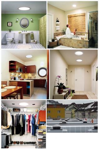 Туннельный фонарь — освещаем темные места дома с помощью световодов. Световые фонари – строительные элементы здания, который предназначенный для освещения помещений солнечными лучами и снижения зависимости от искусственного освещения. Особенно световые фонари применяют в тех помещениях, где естественное освещение через окна минимальное (или отсутствует), и есть возможность прокладки через нежилой чердак светового туннеля. С помощью светового фонаря туннельного типа можно обеспечить естественное освещение комнат и помещений внутри дома, которые не имеют окон (например, ванна, туалет, гардеробная, кладовка, коридор, фото 1). Фото 1. Световоды туннельного типа. Световой фонарь: где применяют, принцип работы, из чего состоит, маркировка. Световые фонари называют по разному – «световоды», «световые колодцы», «световые туннели», система SDS (Solatube Daylighting System). Световоды в последнее время набирают популярность, так как обладают не сложной конструкцией и достаточно высокой эффективностью. Так, световой туннель в пасмурную погоду пропускает через себя до 440 люмен (430 люмен – 40 Вт лампа накаливания), а в солнечную погоду – 2800 люмен, фото 2. Один световой фонарь туннельного типа может освещать помещение площадью 9 м². Фото 2. Световой туннель. В наше время световоды представляются такими производителями: ALLUX, VELUX, Fakro, Solarspot и пр. Световоды могут устанавливаться как в вертикальном, наклоном положениях (кровля с углом от 15° до 60°), так и в горизонтальном положении (стены). На фото 3 представлены варианты установки световых туннельных фонарей. Фото 3. Варианты установки светового туннеля. Туннельные световые фонари разных производителей могут отличаться в некоторых элементах конструкции, но в целом состоят из: внешний элемент – располагается на поверхности крыши (обычно наклонной) и собирает лучи дневного света. Внешний элемент представляет собой полусферу или сферический купол, собирающий лучи света с помощью установленных линз Фринеля. Габариты верхнего элемента круглой формы диаметром 0,25 м, 0,35 м и 0,53 м (бывают и другие размеры), вся внешняя часть обычно имеет размер 0,47×0,47 м и больше. Выше приведенные круглые внешние элементы способны осветить площадь помещения в 14, 24 и 40 м2 соответственно (при высоте помещения 2,4 м); внутренний элемент – рассеивает и равномерно распределяет солнечные лучи в помещении. Внешние и внутренние элементы соединяются туннельными трубами, которые бывают жесткими или эластичными (обычно диаметр 0,35 м, длиной до 2 м, при использовании дополнительных соединительных элементов можно удлинить до 6 м). Принцип работы светового туннеля. Принцип работы светового фонаря туннельного типа очень простой: внешний элемент собирает солнечные лучи и по отражающим внутренним поверхностям туннельной трубы передает их на внутренний элемент, который и рассеивает в комнате лучи света. Внутренняя поверхность труб покрыта слоем алюминия и дополнительно состоит из 400 слоев специальной отражающей пленки (отражающая способность – 99,7%). Такая поверхность способна собирать огромное количество лучей не только в пасмурную погоду, но и даже ночью от излучения Луны и городского освещения. При прокладке фонаря следует помнить, что чем длиннее туннельная труба и чем больше изгибов, тем больше светопотерь: на каждом изгибе потери составляют 10